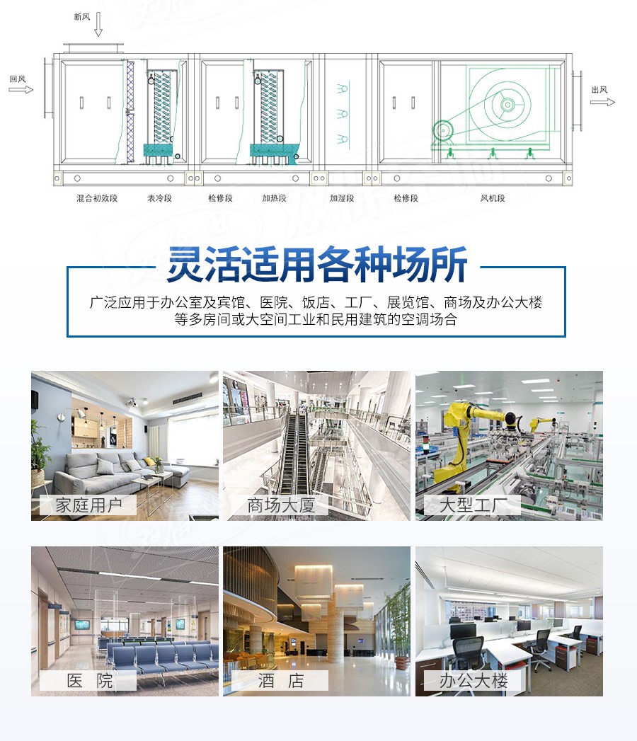 江苏dafa大发空调有限公司—ZK系列组合式空调机组可对空气进行冷却、干燥、加热、加湿、过滤、净化,并具有消声功能。可广泛适用于商场、宾馆、写字楼、体育馆等需空气集中处理的场合以及医院手术室、制药、卷烟、食品、精密仪器制造等净化空调场合。